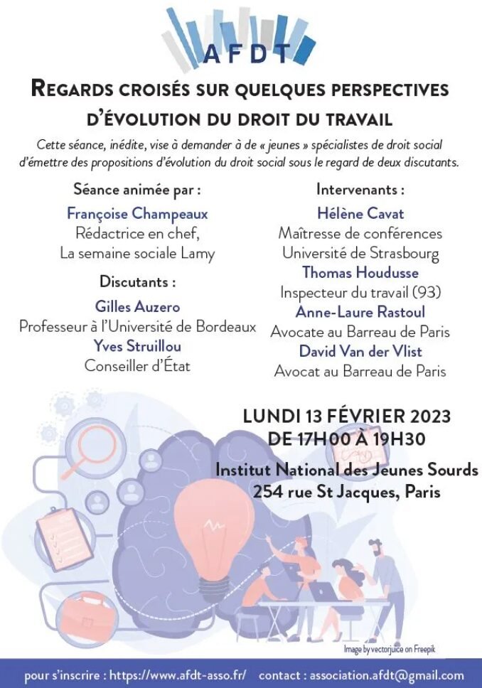 Françoise Champeaux, Rédactrice en chef, La Semaine sociale Lamy - Gilles Auzero, Professeur à l’Université de Bordeaux Yves Struillou, Conseiller d’État - Hélène Cavat, Maîtresse de conférences, Université de Strasbourg - Thomas Houdusse, Inspecteur du travail - Anne-Laure Rastoul, Avocate au Barreau de Paris - David Van der Vlist, Avocat au Barreau de Paris